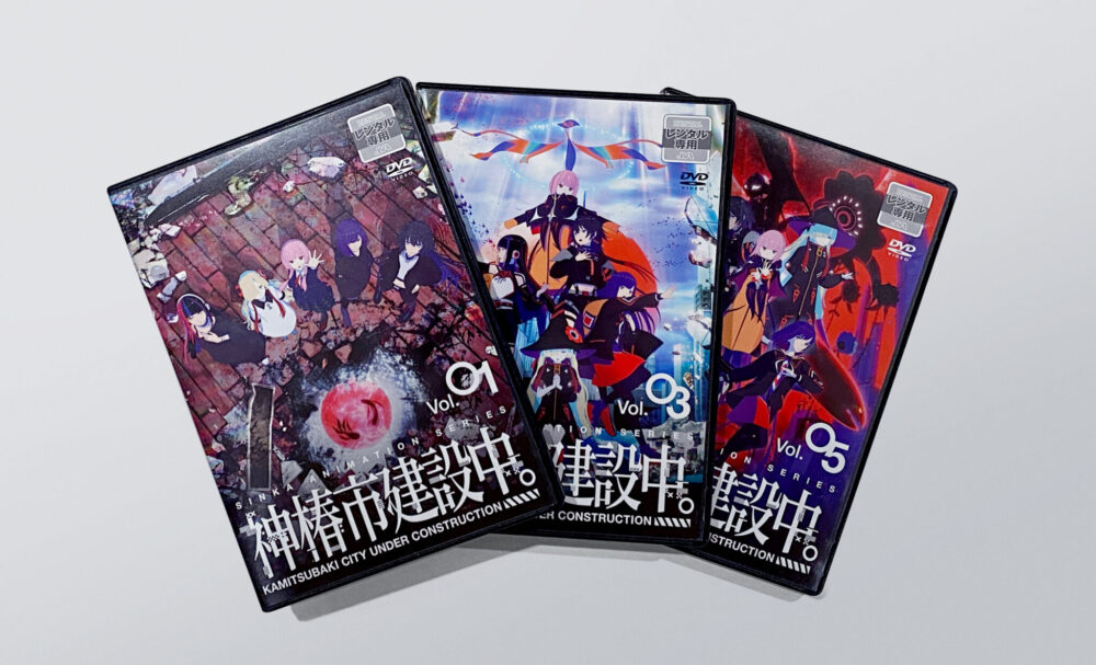 TVアニメ『神椿市建設中。」Blu-ray&DVDおよびレンタルDVD、特捜版フィギュアボックスの装丁を担当いたしました。
